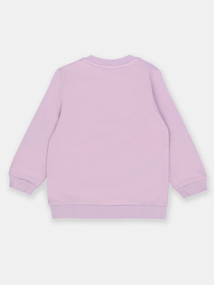 Джемпер для девочки из мягкого футера с начесом. Горловина круглая, оформлена кашкорсе. На плече застежка на кнопки. На полочке выполнена шелкография в виде трех забавных кроликов и надпись - только хорошие флюиды.