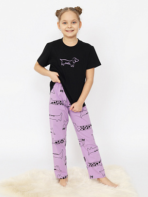 Пижама для девочки (футболка, брюки) черная