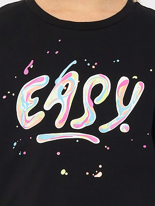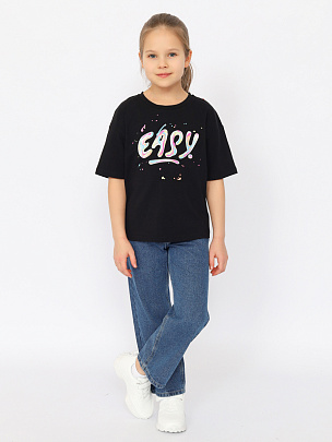 Трикотажная футболка оверсайз для девочки выполнена из мягкого хлопкового трикотажа. Свободный силуэт с заниженной линией плеча не сковывает движения. Модель дополнена круглым вырезом горловины и короткими рукавами. Перед декорирован ярким принтом "Легко".