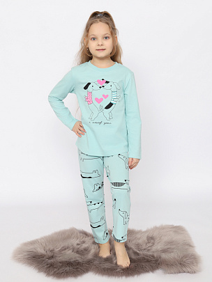Пижама для девочки (футболка, шорты) светло-бирюзовая