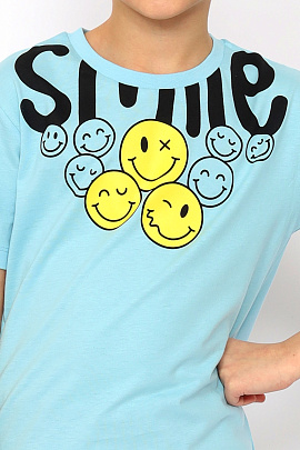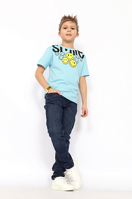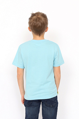 Футболка для мальчика свободного покроя. Рукав втачной, горловина обработана притачной бейкой из рибаны с лайкрой. Перед декорирован принтом "Панно".
