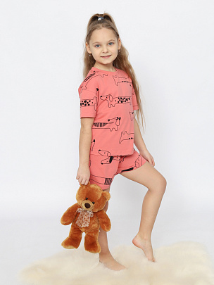 Пижама для девочки (футболка, шорты) коралловая