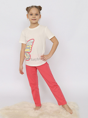 Cskg 50169-21 пижама для девочки (футболка, брюки) экрю