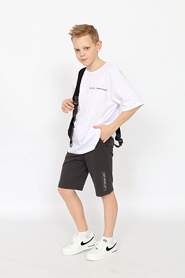 Объемная футболка оверсайз из кулирки повышенной плотности длиной до бедер. Рукав до локтя. Круглая горловина обработана узкой притачной обтачкой из рибаны с эластаном. Горловина декорирована принтом "возврата нет".