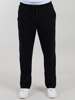 Брюки мужские прямые. Отрезной пояс выполнен из основного полотна. В поясе функциональный кругловязаный шнур вставлен в петли. Карманы наклонные с отрезным бочком. Декорированы жаккардовой этикеткой "продолжать".