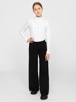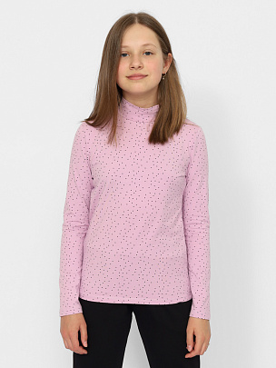 Водолазка с небольшим принтом на спинке для девочки. Модель прилегающего силуэта, с воротником-стойкой с отворотом и длинными рукавами.