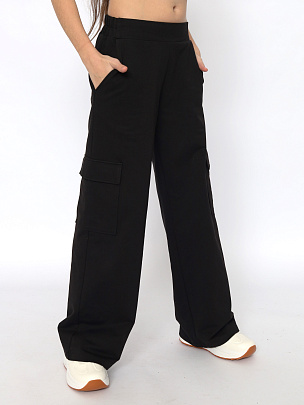 Модные брюки-карго с накладными карманами подойдут в качестве школьной формы, а также повседневной одежды. Изготовлены из футера. Свободный силуэт и пояс на резинке не стесняют движений. Брюки имеют карманы достаточной глубины.