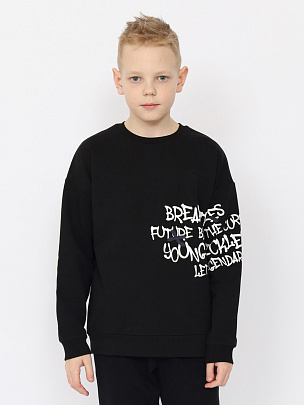 Джемпер мужской прямого силуэта. Круглая горловина обработана узкой притачной обтачкой из рибаны с эластаном. Рукав декорирован принтом.