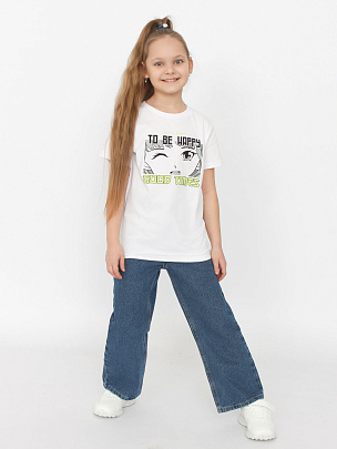 Футболка с коротким рукавом. Горловина круглая, обработана узким воротником из полотна с эластаном. Перед оформлен принтом.